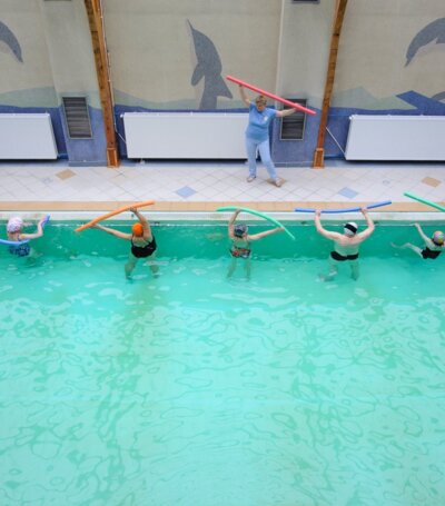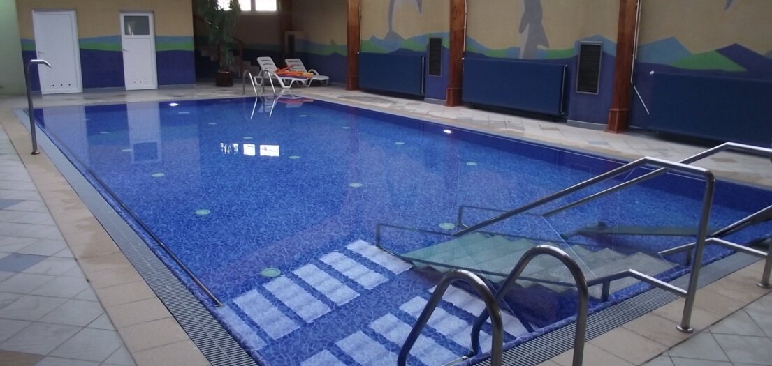 Basen o wymiarach 12m x 6m x 1,20-1,25m wypełniony solanką o stężeniu od 2,2 do 2,5 % jest miejscem ćwiczeń kinezyterapeutycznych, prowadzonych przez wykwalifikowanych instruktorów. Basen dostosowany do potrzeb osób niepełnosprawnych, przeznaczony do rekreacyjnego pływanie i rehabilitacji.