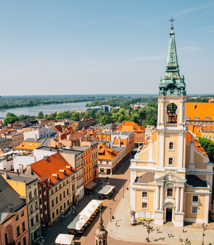 Co prawda pierwszy rynek w Toruniu znajdował się w miejscu, które obecnie zajmuje Kościół Katedralny – to jednak plac w centralnym punkcie Starego Miasta stał się tym właściwym toruńskim rynkiem. Z monumentalnym ratuszem w stylu gotyckim na środku oraz odnowionymi pierzejami po każdej ze stron dorównuje pięknem temu z Krakowa. Znajdziemy tu między innymi Dwór Artusa, Pomnik Flisaka, Kamienicę pod Gwiazdą, Kościół pw. Św. Ducha czy Pomnik Mikołaja Kopernika. Labirynt krętych uliczek oraz mnogie zabytki przyciągają turystów za dnia, by wieczorem kusić licznymi knajpkami, pubami oraz nocnymi klubami. Nie wspominając już o doskonałych pierogach i jedynym w Polsce piwie piernikowym. Nic dziwnego, że wszystkie te skarby w 1997 r. doceniła komisja UNESCO, wpisując toruńską Starówkę na listę światowego dziedzictwa.